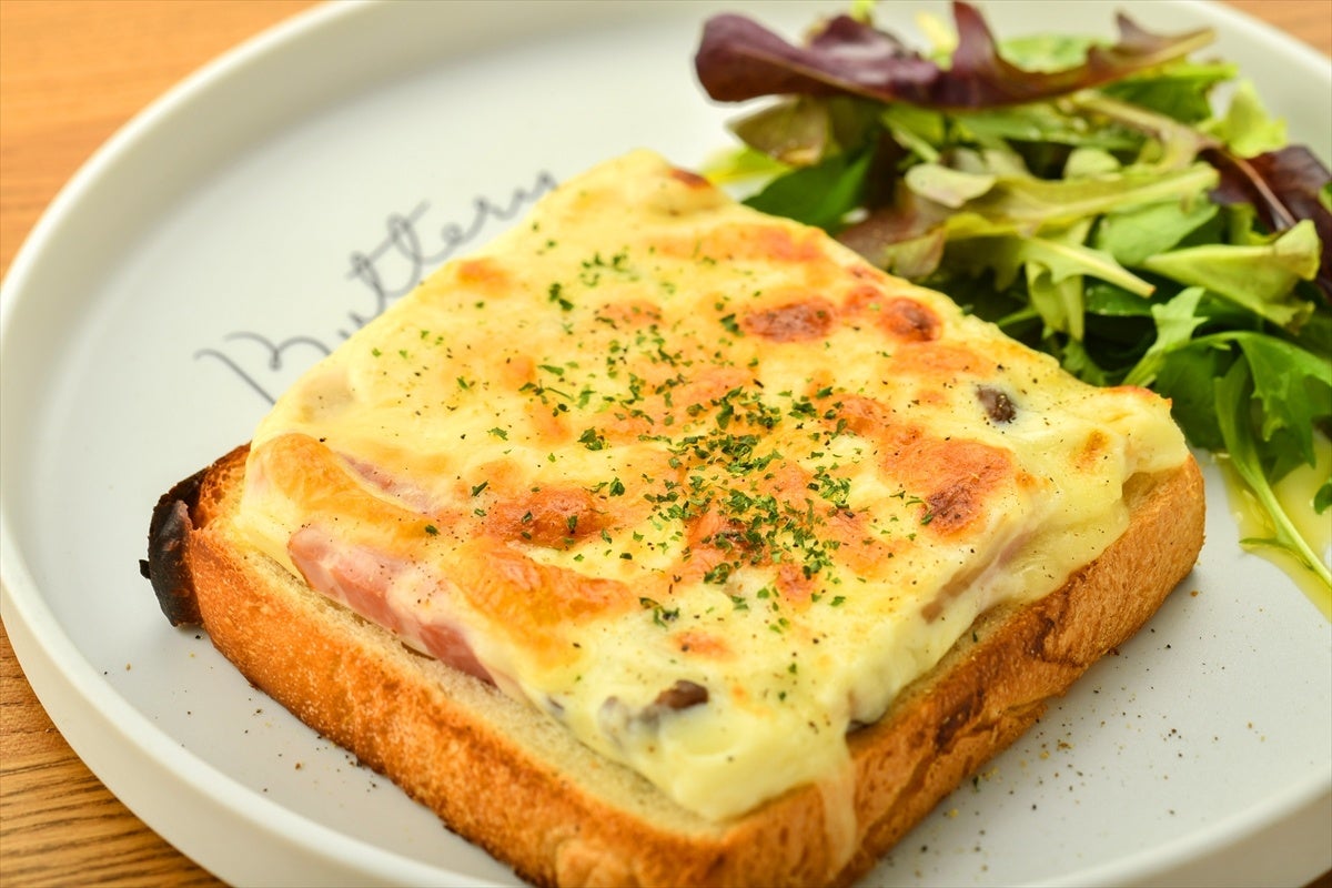 そして、12月限定商品として『グラタントースト』も新発売となります。ベーコンやたまねぎ、きのこをこだわりのバターで炒め、素材の旨味を引き出しました。さらに、パンにもたっぷりとバターを塗っているので、バター自体の風味を存分に楽しめます。たっぷりの具材にチーズを合わせ、熱々に焼き上げる『グラタントースト』は、食べ応えも抜群。香ばしいバターとチーズが食欲をそそる、ブランチやランチにもおすすめの期間限定商品です。