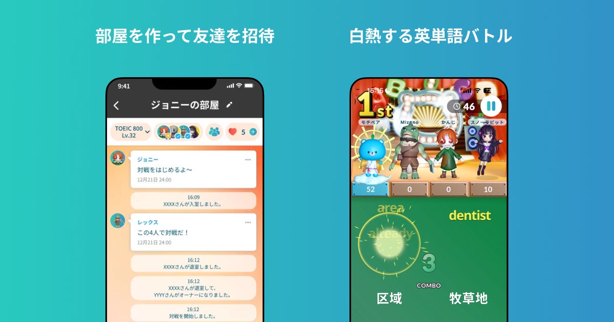 英単語アプリ「モチタン」が「フレンド対戦」機能を公開!リアルタイムの英単語バトルで学習のモチベーションを刺激。友達と一緒に切磋琢磨しながら英語を学ぶ、世界初の学習体験を実現しました。
