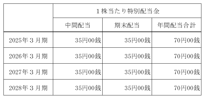 2025年3月期中間配当より、普通配当に加え下記の特別配当を実施する予定です。