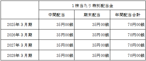 また、株主還元の強化の一環として、2025年3月期から2028年3月期までの間、総額200億円以上の株主還元を実施し、株主還元のうち約100億円を特別配当として実施する方針を決議しました。