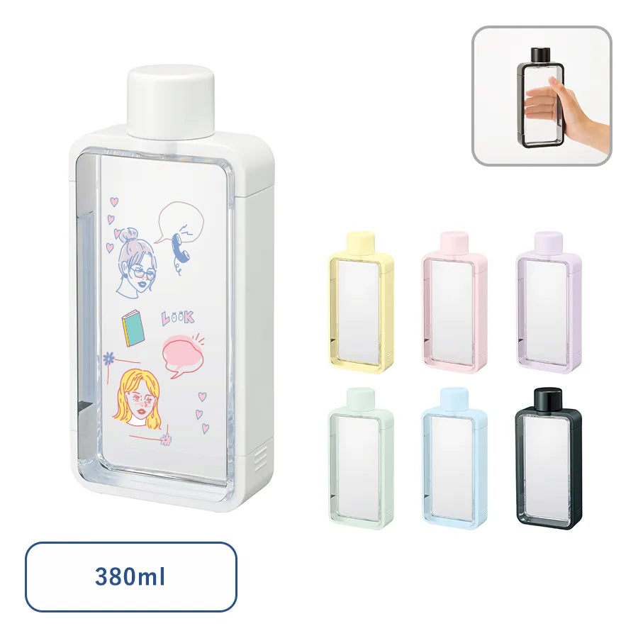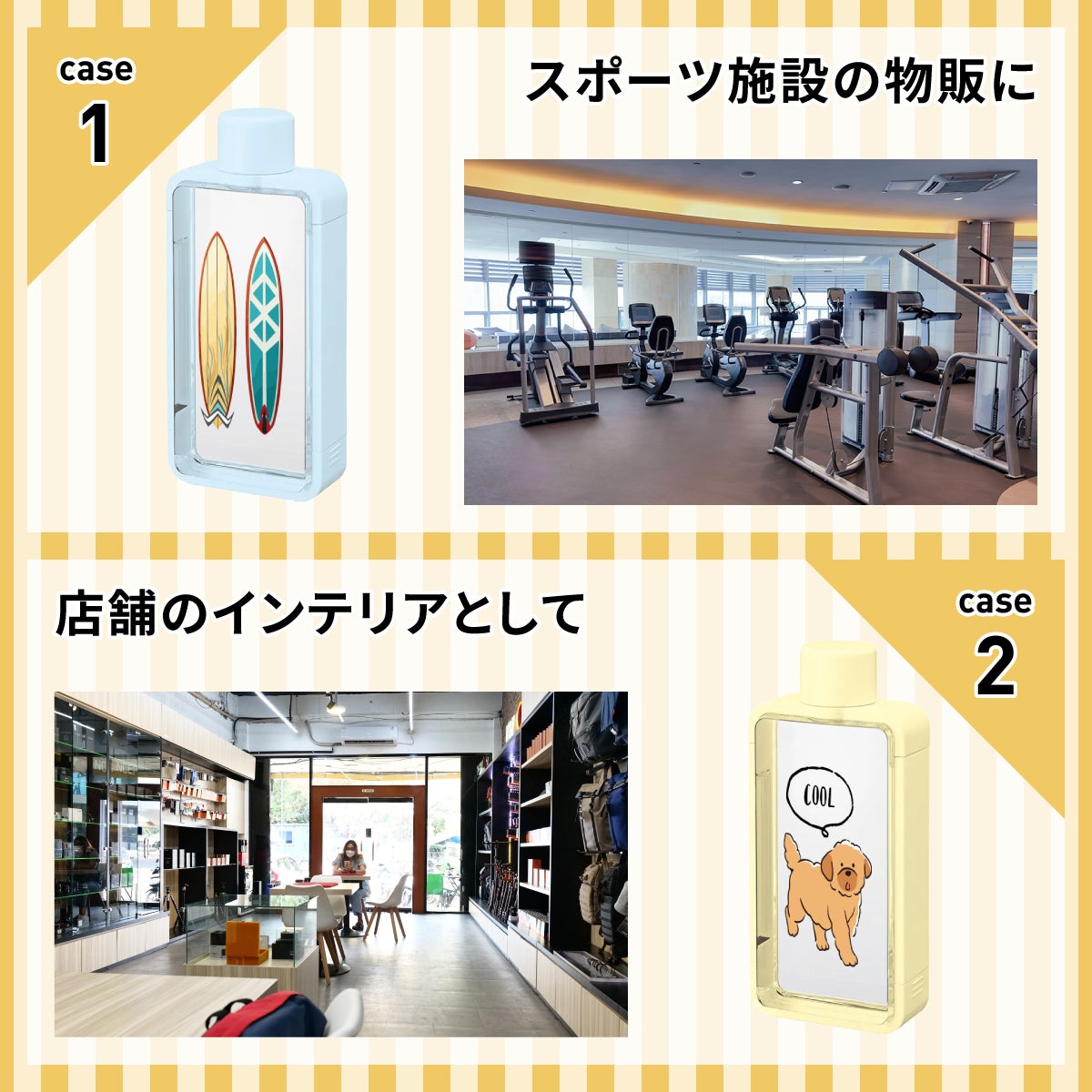 デザイン性と利便性を兼ね備えたスタイリッシュなボトルです。香水瓶のような個性的かつスリムな形状で、バッグに入れても場所を取らずにすっきり収まります。筒状のボトルと比べて印刷の範囲が広く取れるため、デザインの幅も広がります。ボディへのフルカラー印刷も可能なので、オリジナルグッズや店舗のインテリアとして利用する方が多いアイテムです。