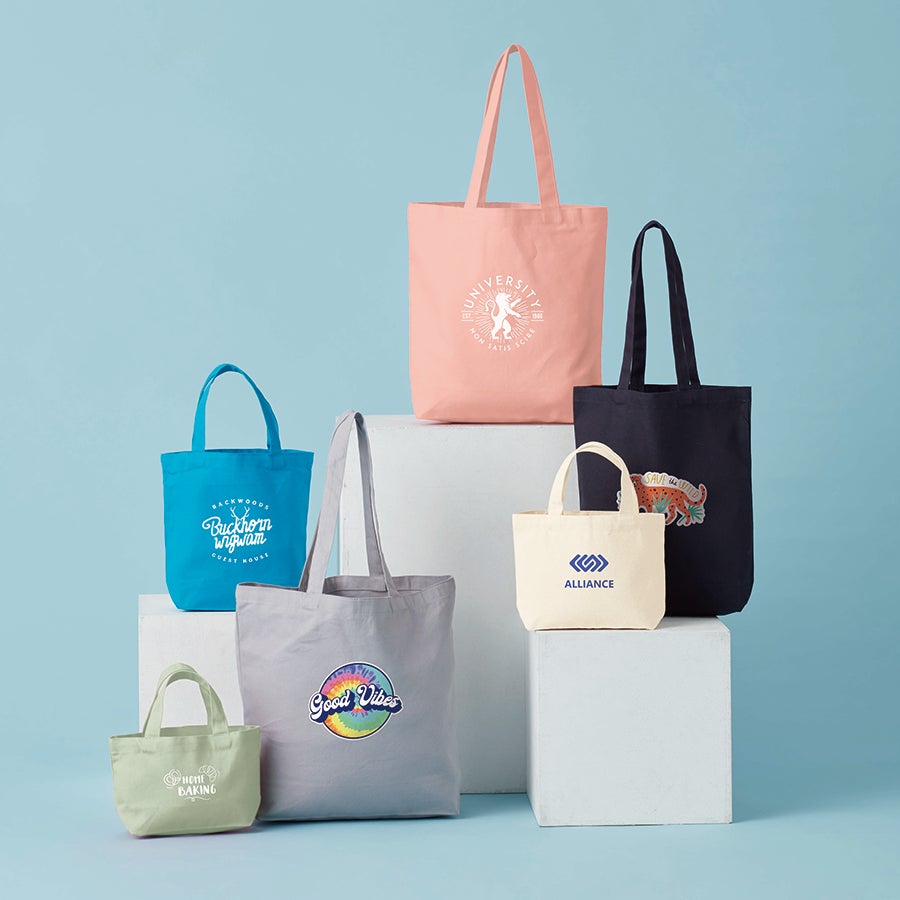 カラー展開が豊富で10オンスコットン生地を使用した、A4サイズが余裕を持って入るスタンダードなトートバッグです。名入れ範囲が広く取れてシンプルなデザインなので、物販グッズや企業用ノベルティ、個人利用まで幅広い用途でご好評をいただいております。定番人気のバッグは物販グッズとして人気が出ること間違いなし!