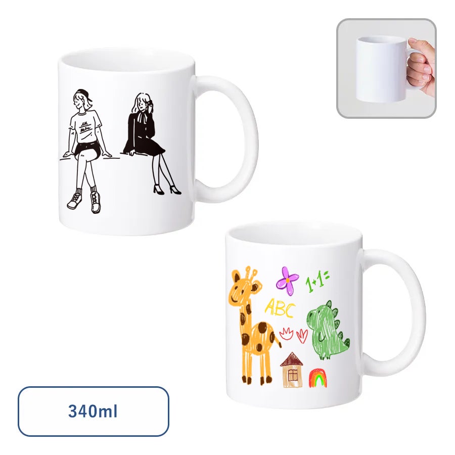 定番ストレートタイプのマグカップ。デザイン面が大きく、フルカラーの名入れが映えます。