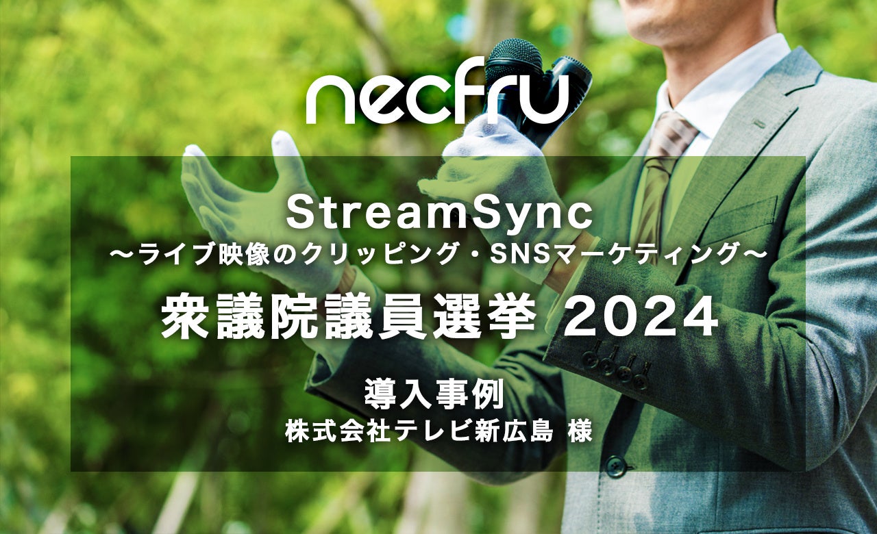 動画配信システムを展開している株式会社ネクフル(本社:東京都中央区 代表取締役:草薙俊介)は、生ライブ配信中の映像をクリップ切抜きするサービス「necfru StreamSync」を、株式会社テレビ新広島様(本社:広島市南区 代表取締役:箕輪幸人 以下:TSSという)にご提供し、2024年10月27日(日)に放送された「2024衆院選特番 Live選挙サンデー」(以下:同番組という)の配信に採用されたことをご報告いたします。