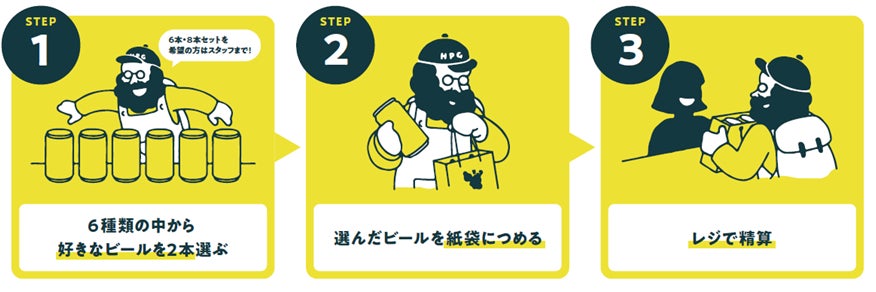 本イベントは、普段オンライン限定で販売しているクラフトビールを1本から購入することができます。大人気の「大人のチョコミント」や「おつかれ山ビール」をはじめ6商品を販売します。お好みにあわせて自由なビールの組み合わせをつくり、イベント限定の紙袋につめて購入いただける機会となっております。ギフトにもぴったりのラインナップとなっておりますので、是非お越しください。