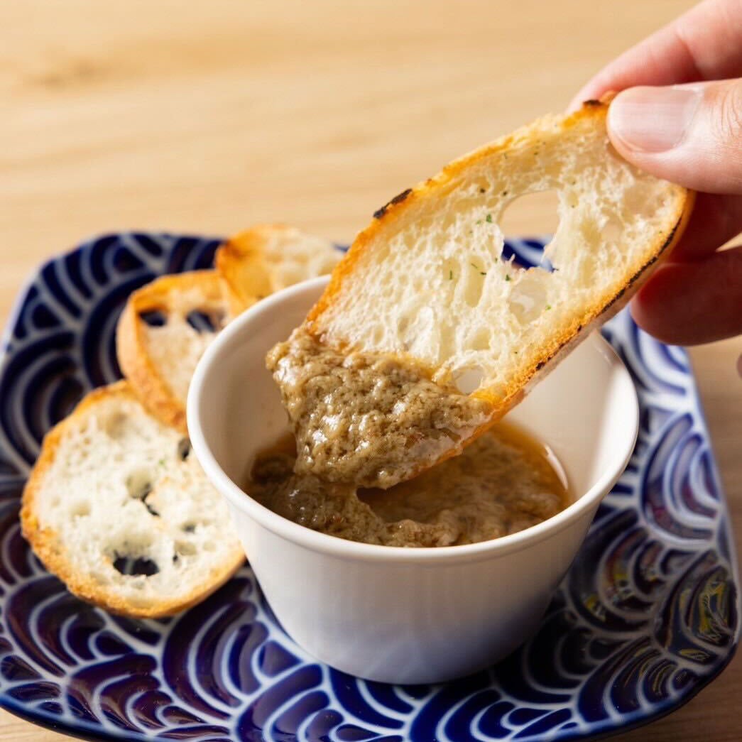 逸品料理:やみつきあさりの山椒揚げ、かにみそアヒージョ、パリパリ骨せんべい、おれのイカバター、サクサク目光唐揚げ など