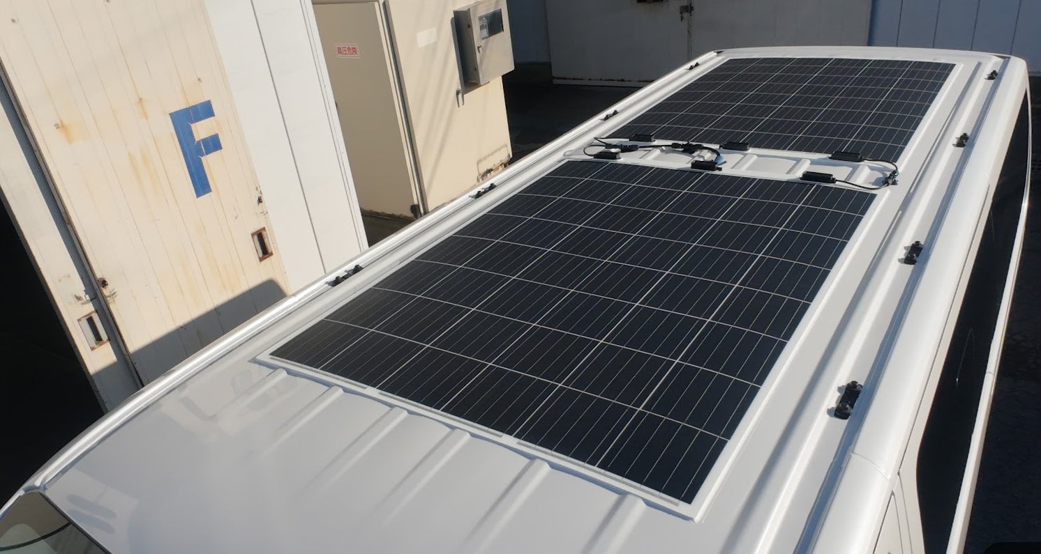 ”クーラーパッケージプラス2”をお選びいただきますと、リチウムイオンバッテリーが495Ah、インバーターが3000W、12Vクーラー専用外部電源口、ポータブルバッテリー電源口、外部電源装置(20A)、100Vコンセント、断熱加工がセットで搭載されます。オプションで薄型ソーラーパネル250Wを最大2枚、追加することもできます。