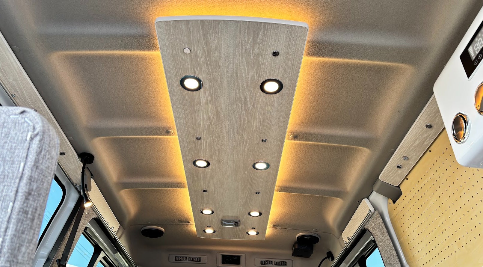 お客様からの評価が高い間接照明。天井の間接照明が柔らかな光を演出し、車内全体を豪華で落ち着いた空間に仕上げています。