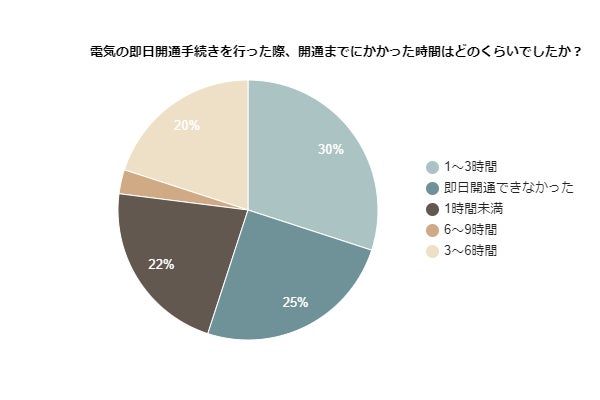 電気の即日開通手続きを行ったとしても、25%は「即日開通できなかった」と回答しました。