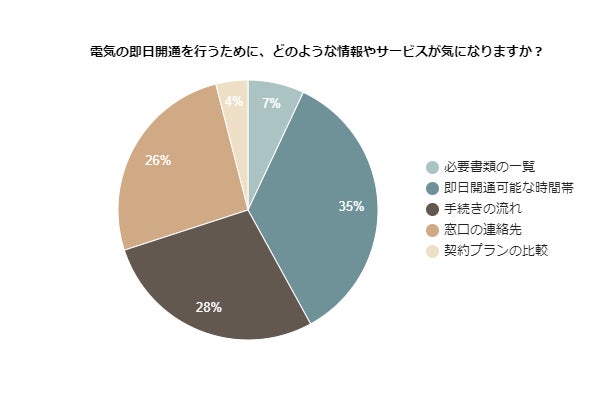電気の即日開通を行うために、35%の人が「即日開通可能な時間帯」が気になっています。