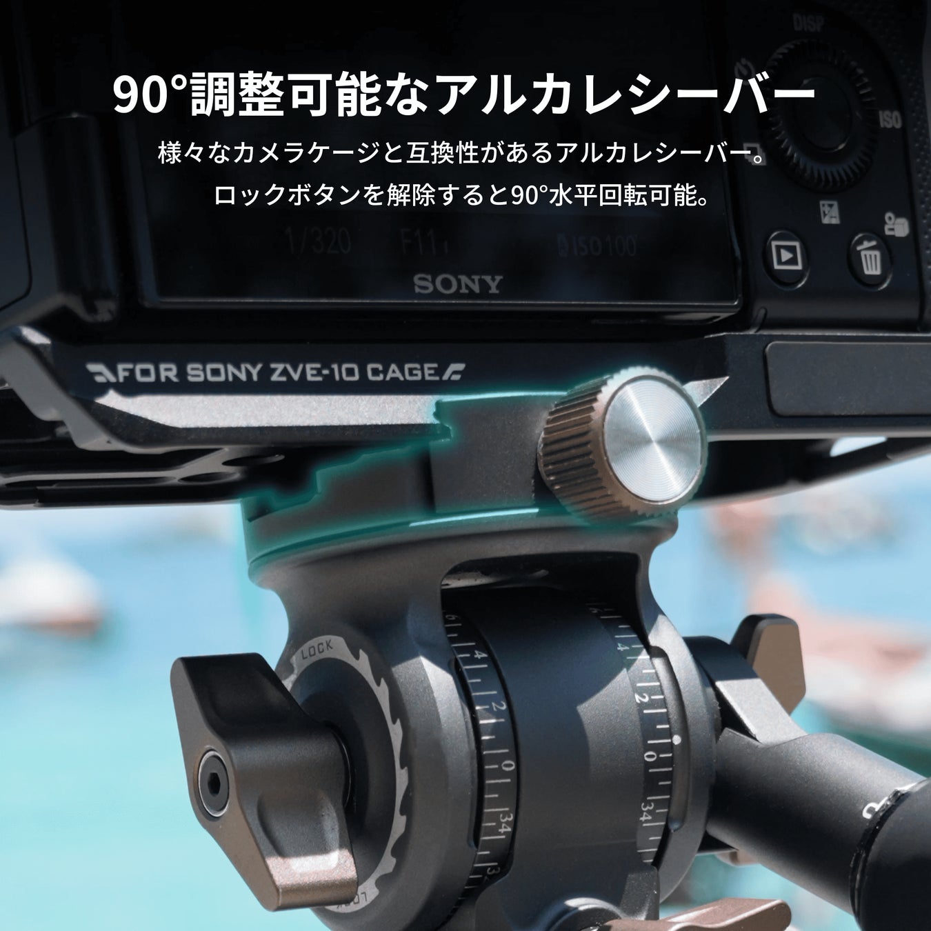 高い互換性を備えたアルカレシーバーを搭載で90°の水平回転が可能、使用環境に応じてサポート可能で、水平・垂直・俯瞰の撮影構図を素早く自由に切り替えられます