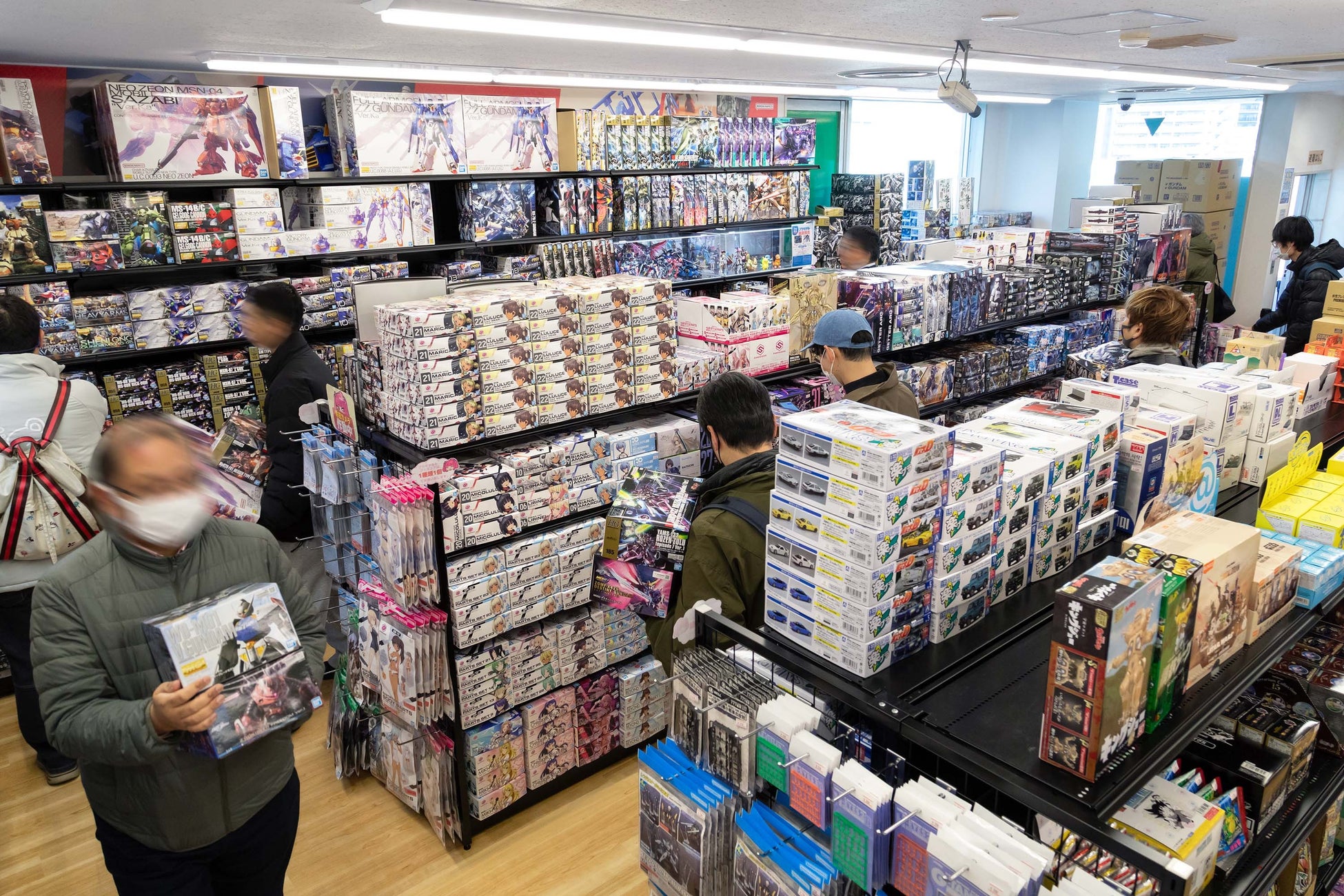 店内ではトレーディングカード(新品・中古)を中心に、プラモデル、フィギュア、アニメグッズ、くじ、コレクターズアイテムまで幅広く展開。