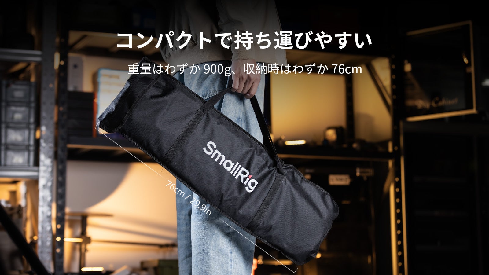 重量はわずか900gで、収納時はわずか76cmで、コンパクトで持ち運びやすいです。