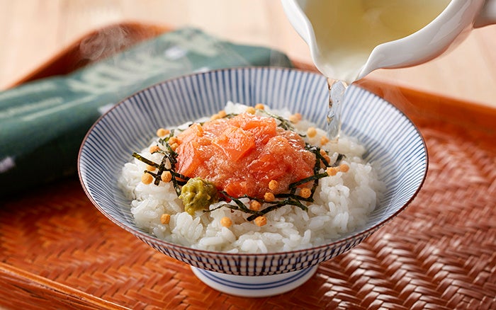 2020年7月の販売開始以降、累計34万食以上を売り上げ太宰府天満宮観光の人気スポットにもなっている「ふくや太宰府店」のテイクアウト明太茶漬けに、新しい味として6月上旬から販売予定です。