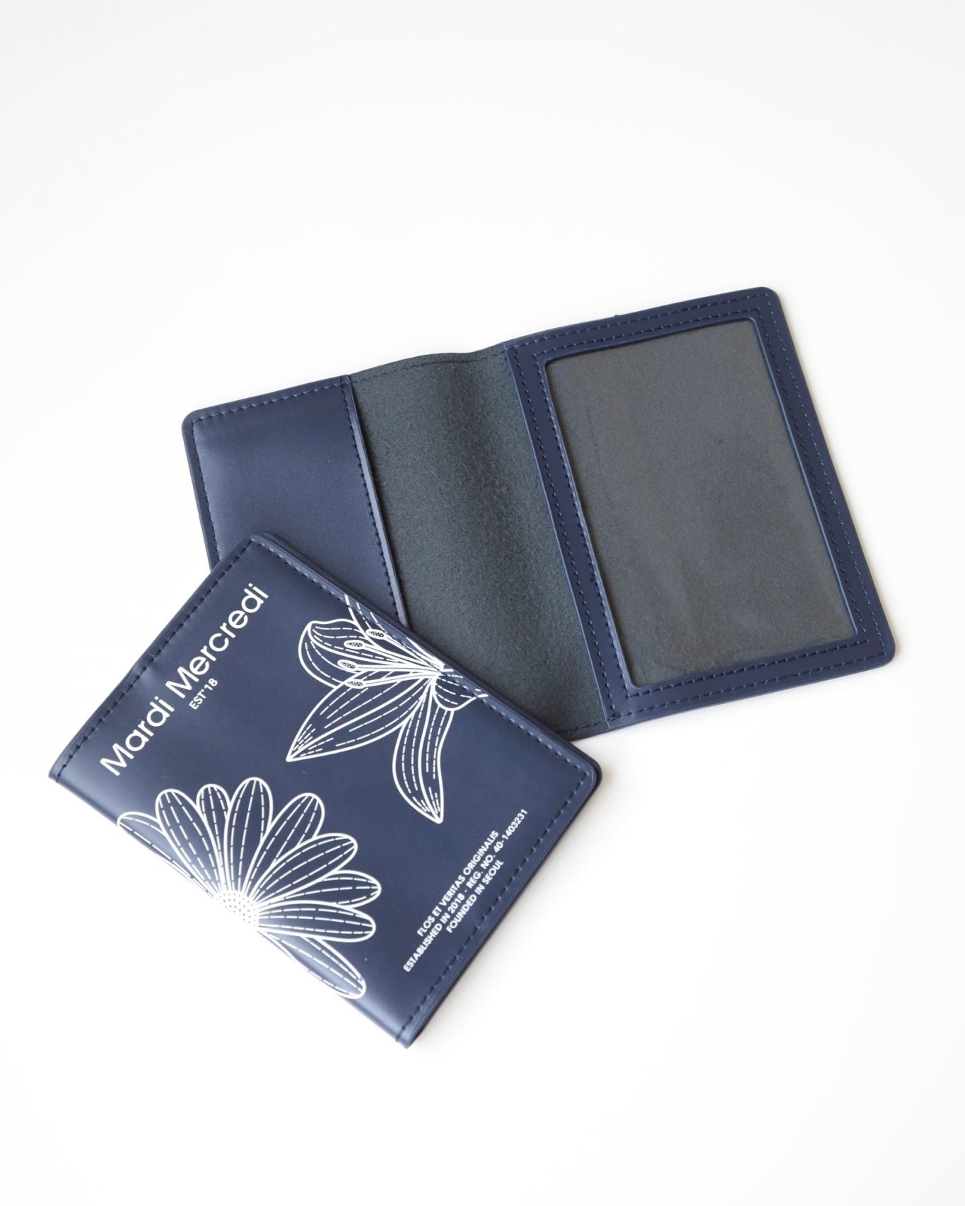 肌触りの良いフェイクレザーに、フラワーマルディのモチーフをあしらったパスポートケース。