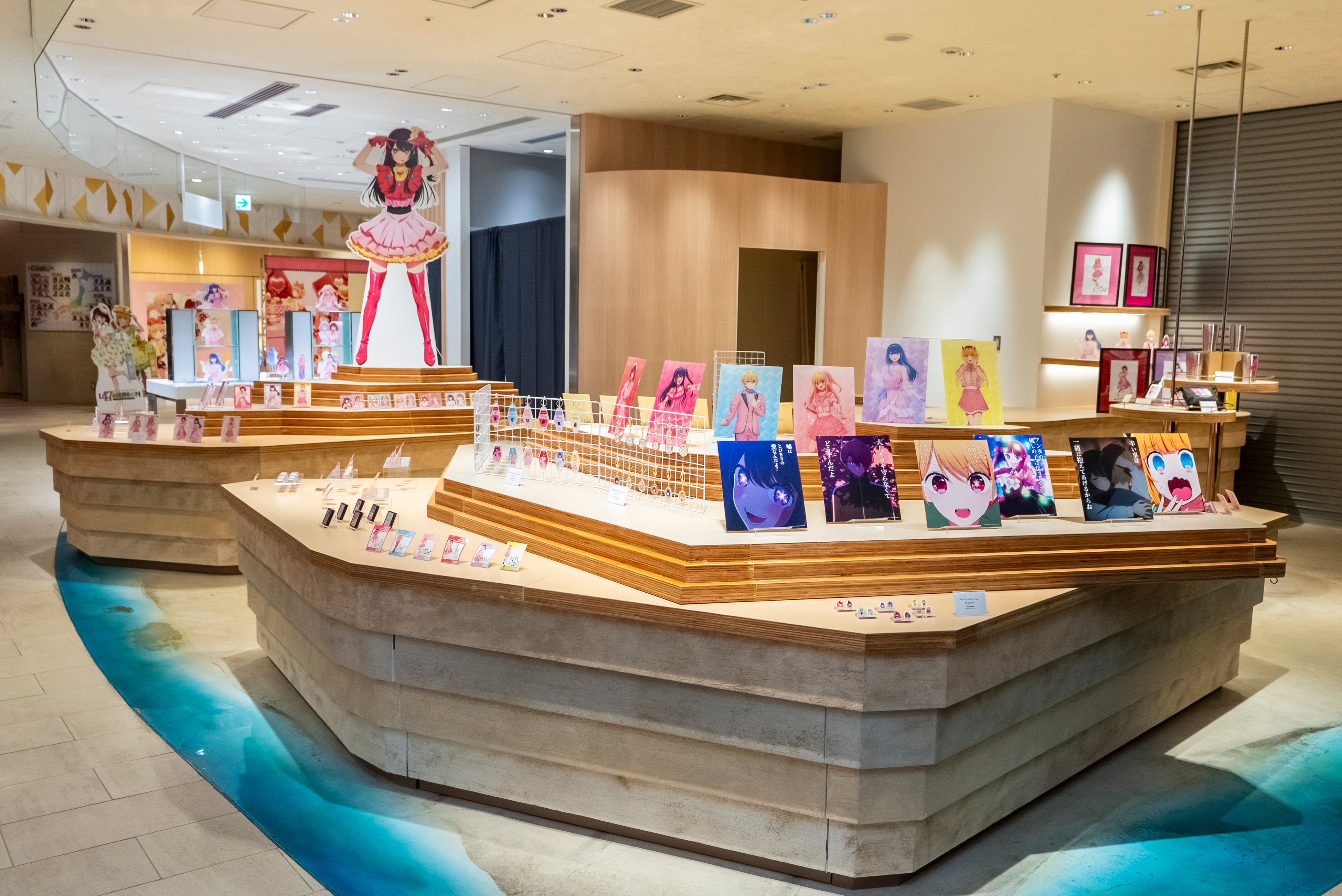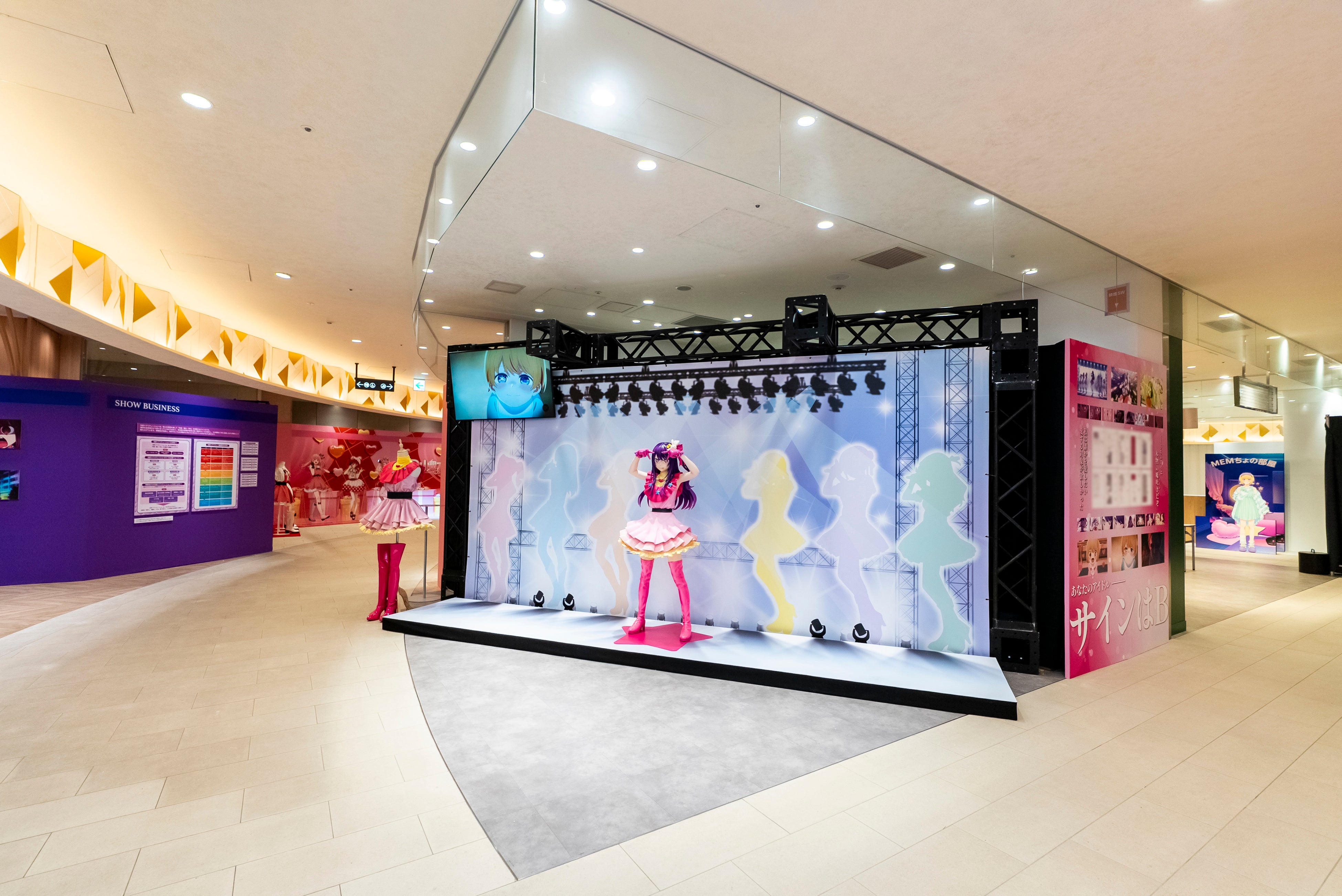 TVアニメ【推しの子】の世界観と現実の芸能界の仕組みを比較しながら、主要キャラクターたちの「名言や名シーン」を様々な視点で深掘りする内容となっているが、まず何よりも驚かされるのが、そのスケール感! 東急プラザ渋谷4階フロア全体が丸ごと【推しの子】仕様となっており、同フロア内にはコラボカフェ(日本全国project【47都道府県の子】コラボカフェ)も併設。どっぷりと【推しの子】の世界観に浸ることができる。