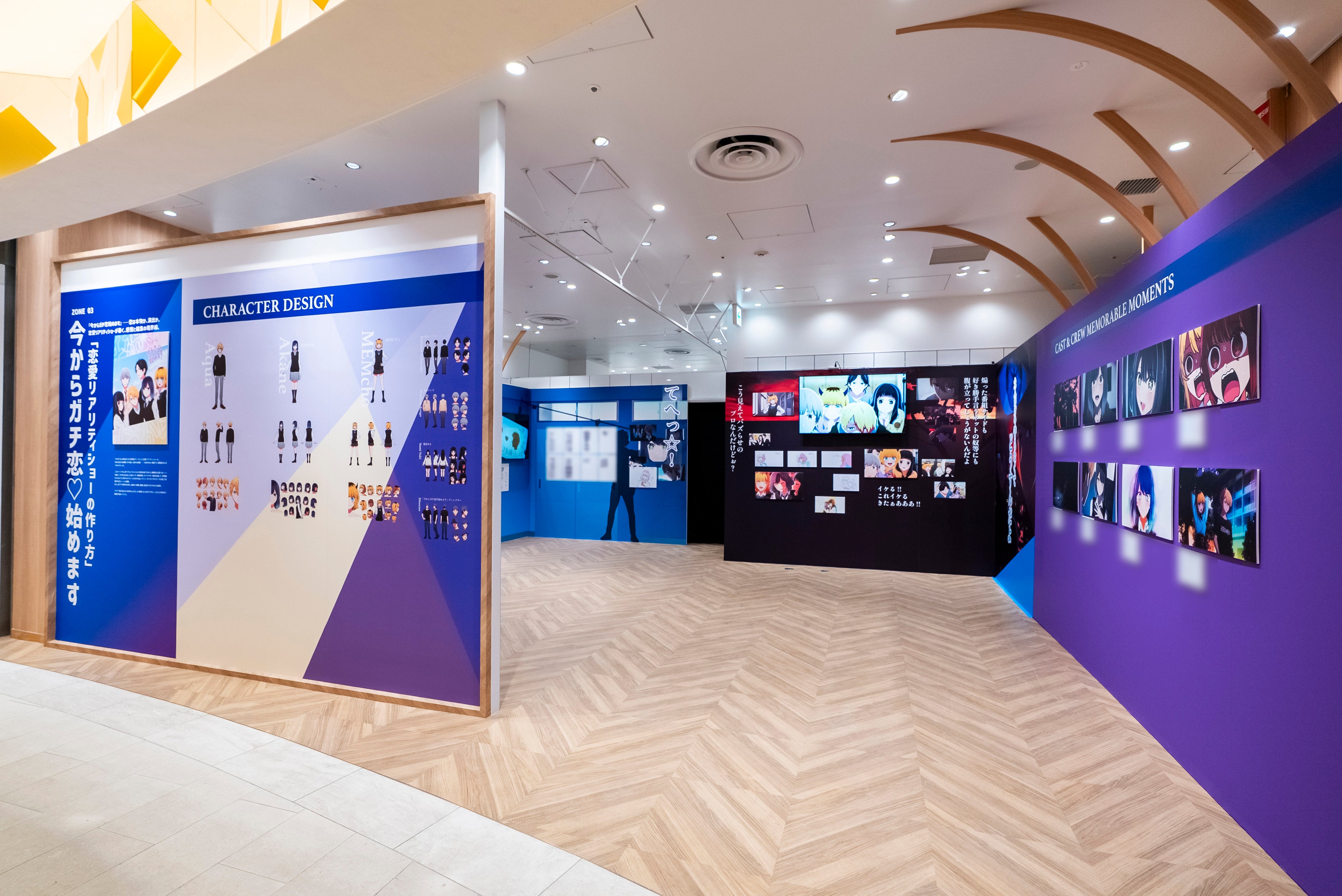 「ZONE.00:プロローグ」では、子役時代のアクアと有馬かなが、初めて同じ現場に立ち、共演した作品でもある映画『それが始まり』を紹介。劇中でアクアと有馬かなの撮影の場となった村の入口を再現しながら、 「『監督がほしい画は』きっと……」など物語を象徴する名⾔・名シーンを軸に、アニメの絵コンテやキャラクター設定の資料などを通して、シーンがどのように構想され、形になっていったかを辿っていく。まさに2人の“原点”を追体験することができる。
