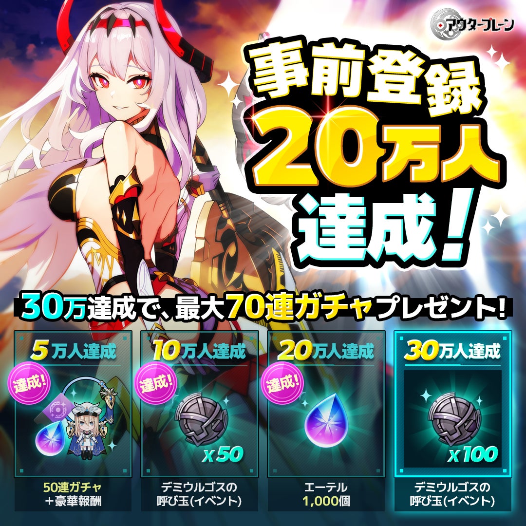 みなさまの声援のおかげで、『アウタープレーン』は事前登録者数20万人を達成しました。