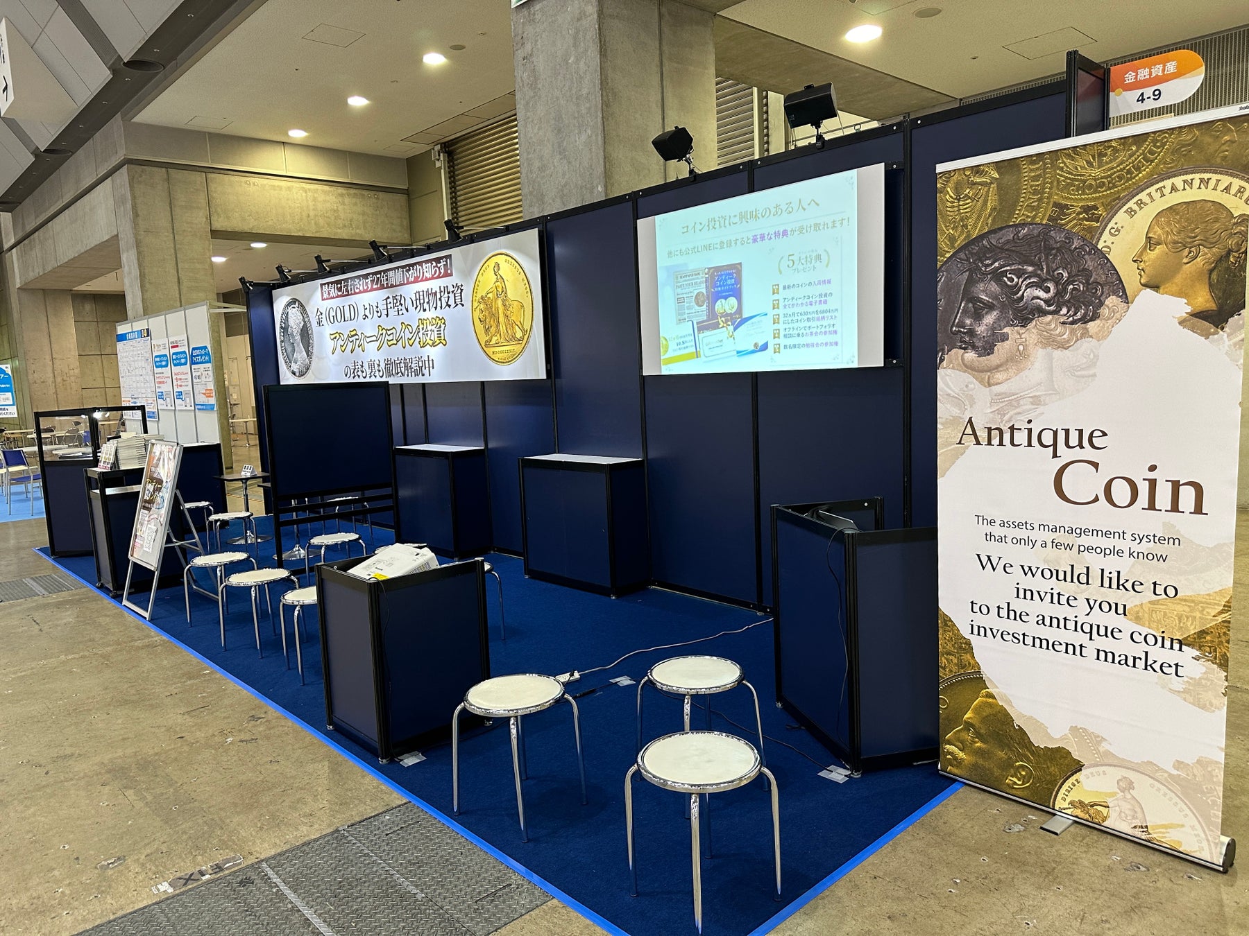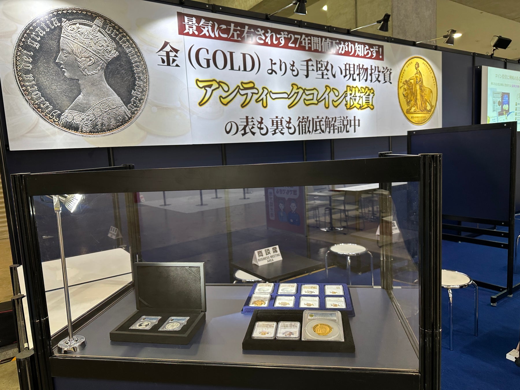 当社のブースでは、アンティークコイン投資セミナー、実物コインの展示、資産運用や相続に関する個別相談会を実施しました。来場者は、当社代表ディーラー葉山満の著書『アンティークコイン投資 解体新書』を無料で受け取り、投資のノウハウや悪徳業者から身を守る知識を学びました。これにより、投資家は安全で信頼できる環境でアンティークコイン投資を行うことが可能になります。