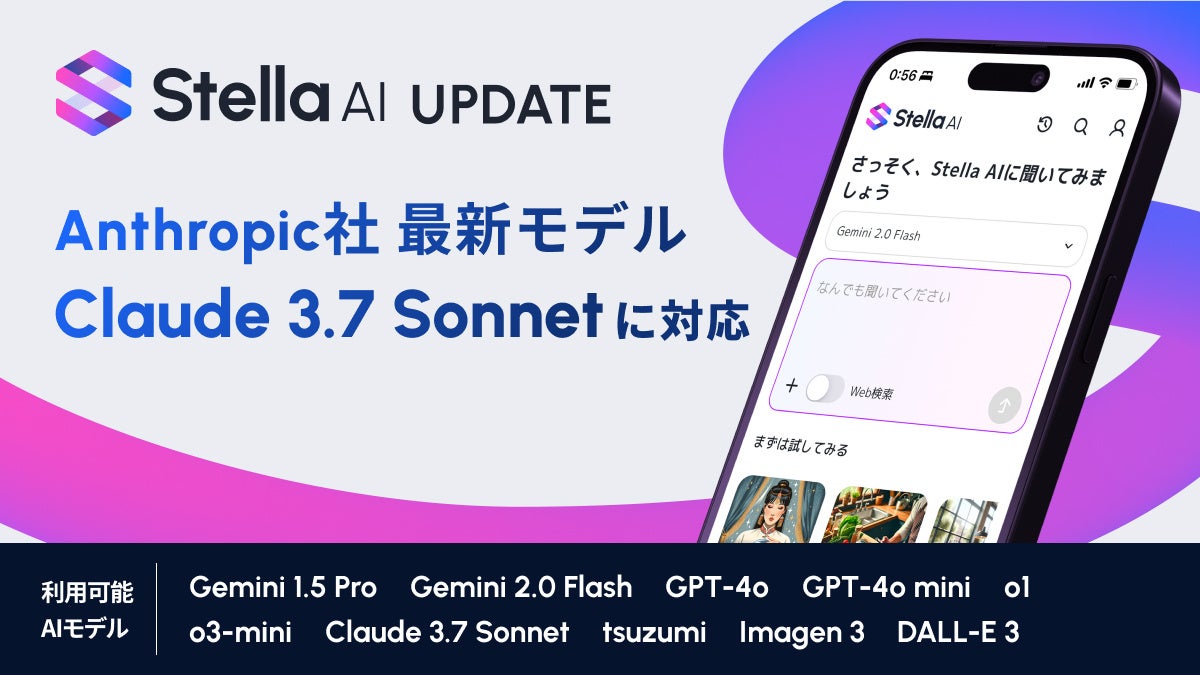 株式会社SUPERNOVAが提供する「Stella AI」に、Anthropic社の最新AIモデル「Claude 3.7 Sonnet」が搭載