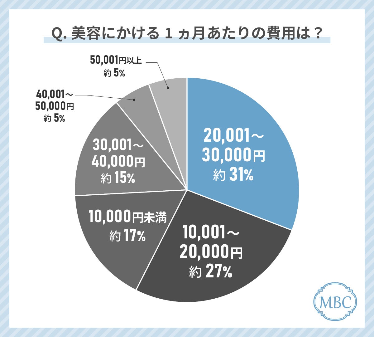 「美容にかける1ヵ月あたりの費用を教えてください。」とアンケート調査した結果、