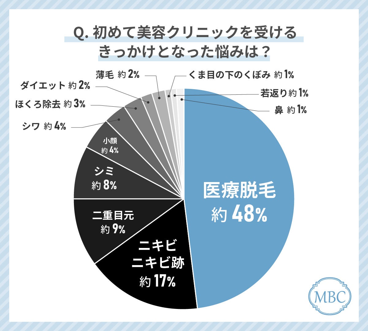 「初めて美容クリニックを受けるきっかけとなった悩みは何ですか?」とアンケート調査した結果、