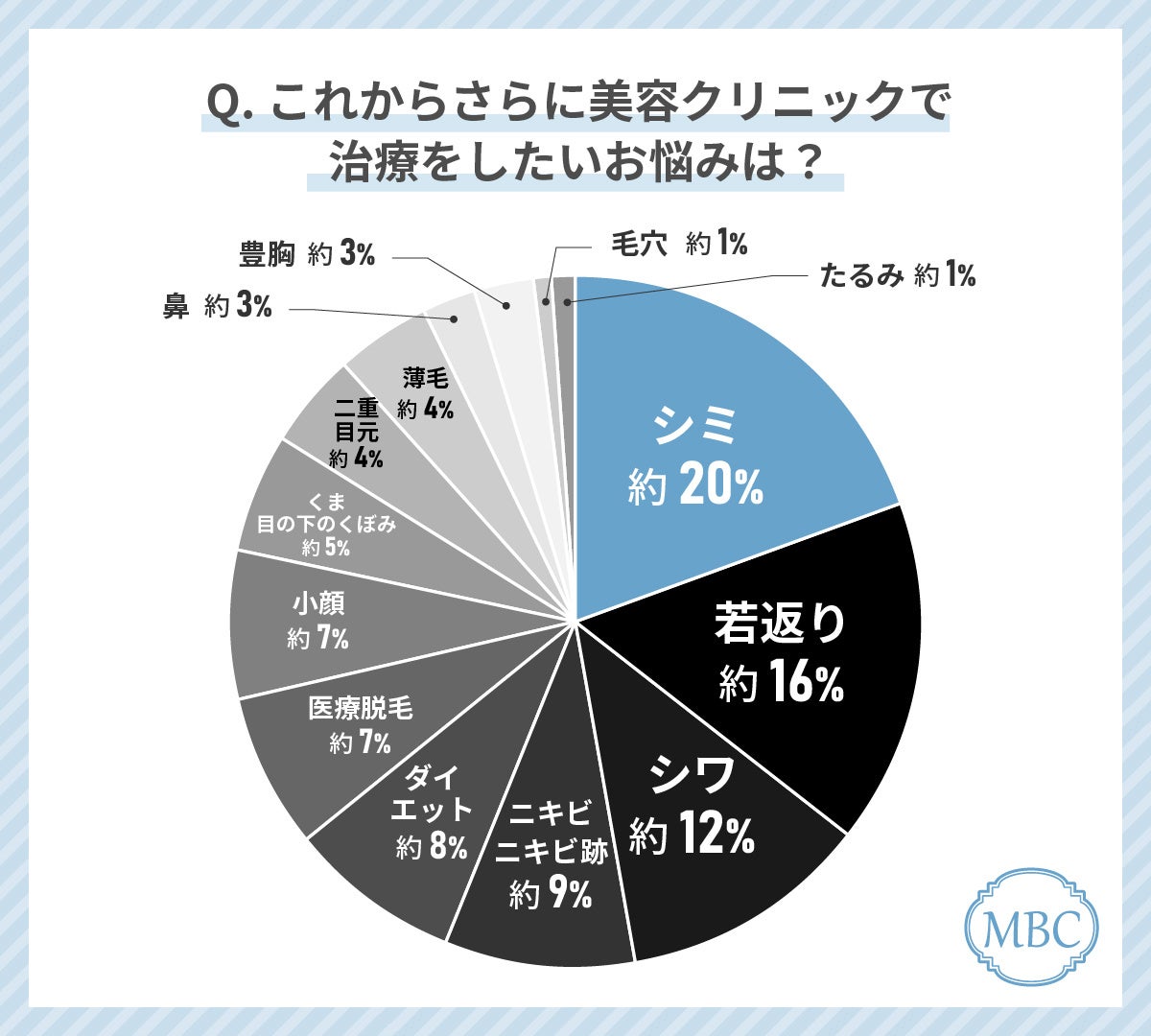 「これからさらに美容クリニックで治療をしたいお悩みは何ですか?」とアンケート調査した結果、