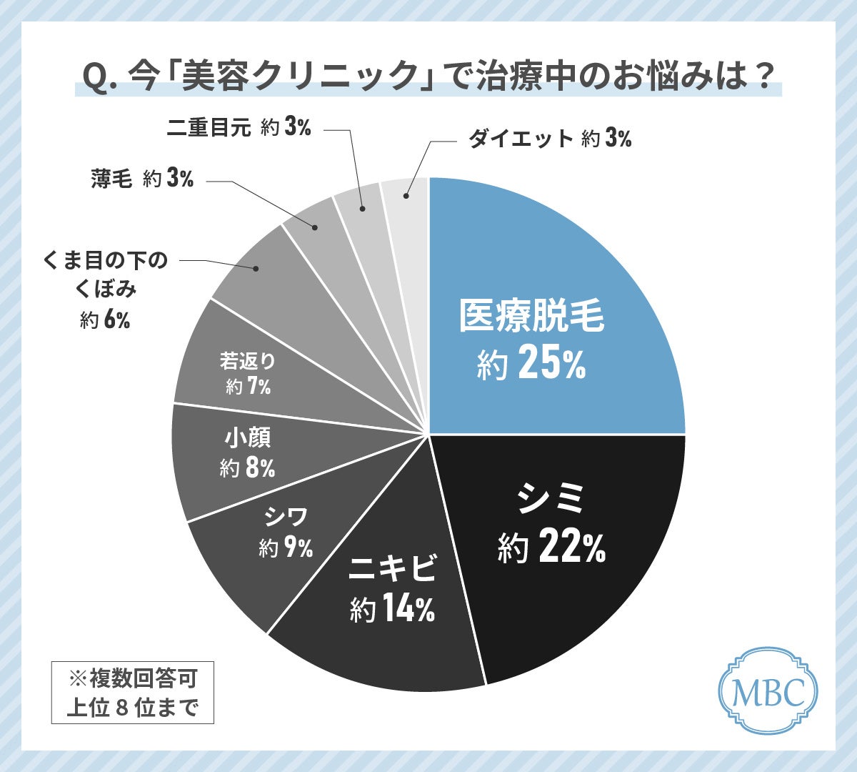 「今「美容クリニック」で治療中のお悩みは何ですか?※複数回答可」とアンケート調査した結果、