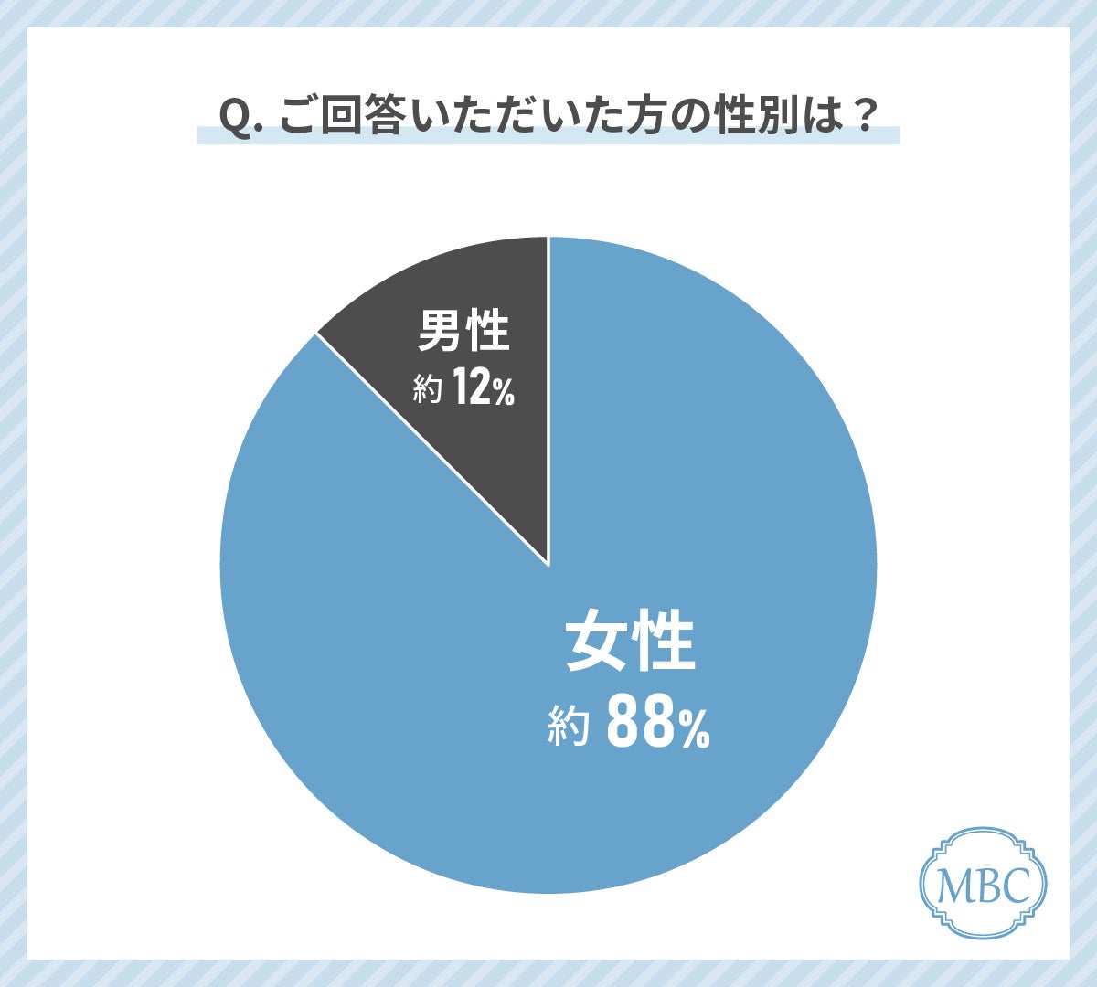 「回答者の性別をお答えください」とアンケート調査した結果、女性(88%)、男性(12%)でした。