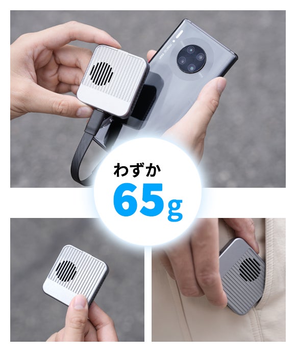 重さはわずか65gで、スマホにつけて長期間撮影しても疲れを感じさせません。厚さはわずか1.2cmと極薄!使わないときにはポケットに入れて、どこにでも持ち運べるのもポイントです。