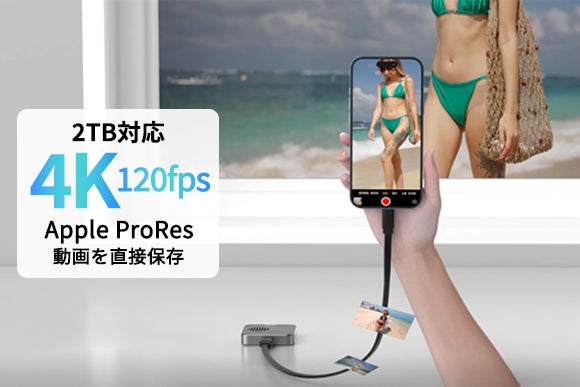 さらに、iPhone 16 Proシリーズに搭載されるApple最新撮影規格である4K/120fps ProResにも対応しており、10Gbps高速データ転送速度で大容量の映像を撮りながら直接SSDに保存できます。