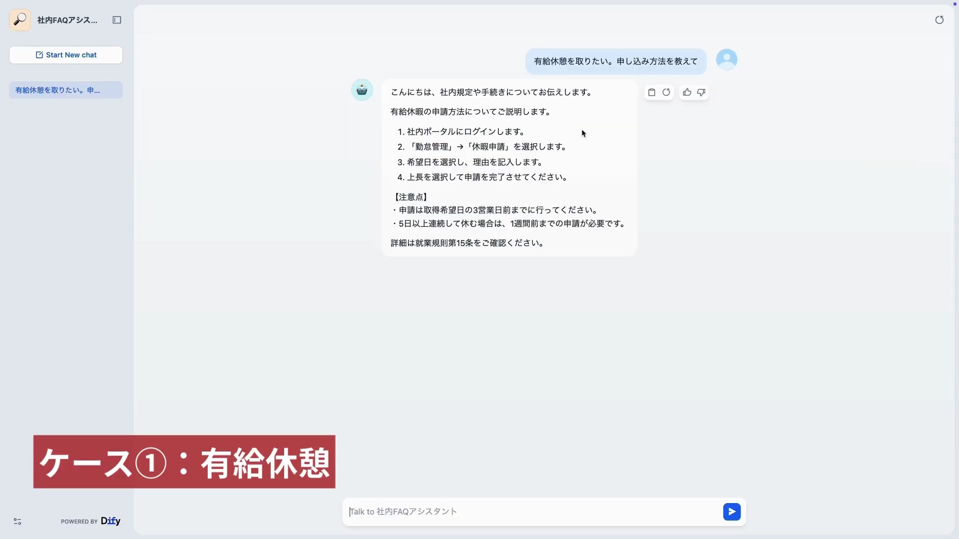 事例1:人事・総務部門向けDify社内FAQチャットボット