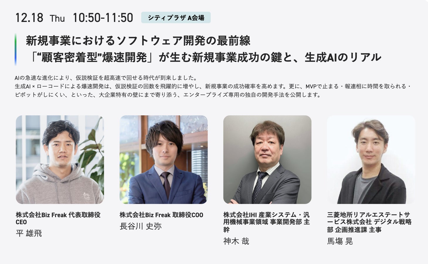 Biz Freakは、12月18日(木)10:50〜11:50のセッションに登壇します。