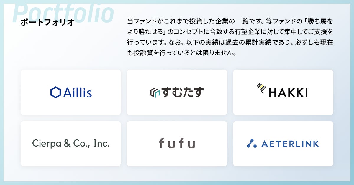 また、ファンドの成立目標は突破いたしましたが、引き続き複数の参画意向を観測しているため、最大サイズの到達まで募集は継続する予定です。