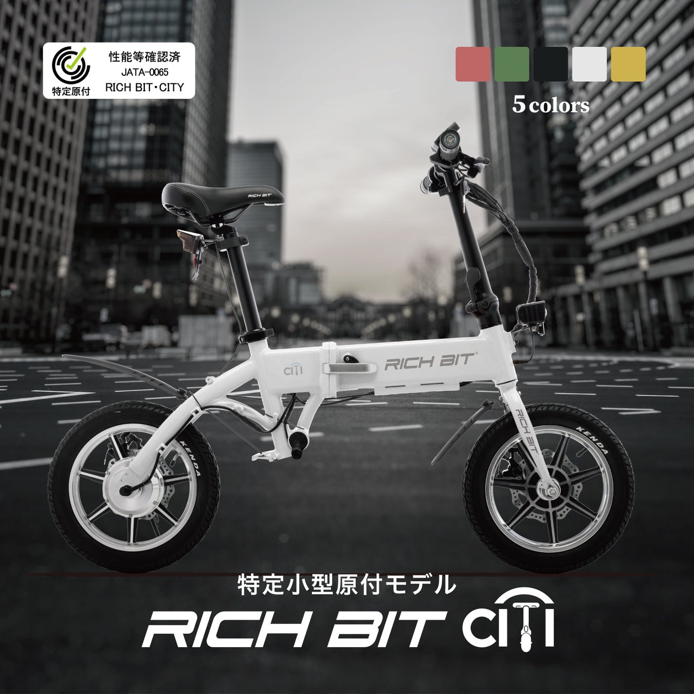 RICHBIT CITYは、2023年7月1日の改正道路交通法の施工により新設された「特定小型原動付自転車」区分で自転車型の新しい電動モビリティです。国土交通省の性能等確認制度にて適合認定(JATA-0065)を受けており、公道走行に必要な保安基準をすべて満たしております。小売販売価格は139,800円(税込)になります。