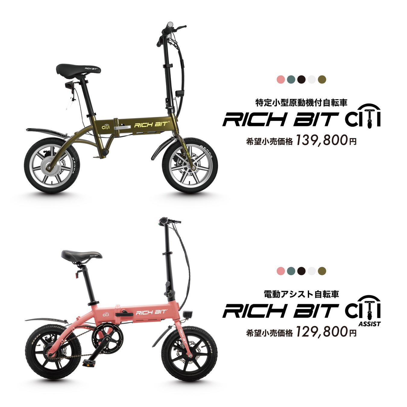 またRICHBIT CITY ASSISTは、電動アシスト自転車として型式認定(駆動補助機付自転車:交N24-39、普通自転車:交A24-35)を受けております。小売販売価格は129,800円(税込)になります。
