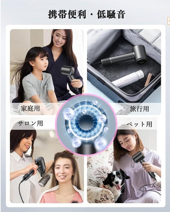 ハイスピードドライヤーは、高濃度2億マイナスイオン機能を搭載されて、髪に潤い、静電気を軽減し、髪を保護し、光沢のある髪を与えます。