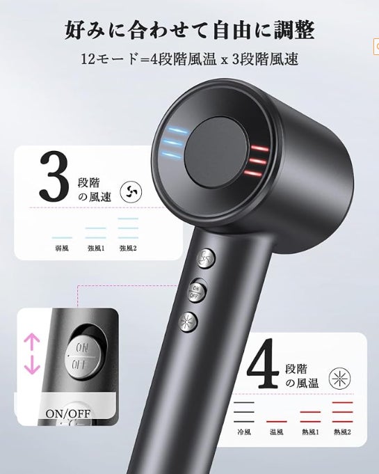 多段階の温度と風速の調整機能を備えており、さまざまな髪質やスタイリングのニーズに適しており、髪のドライ時間を自由に対応できます。