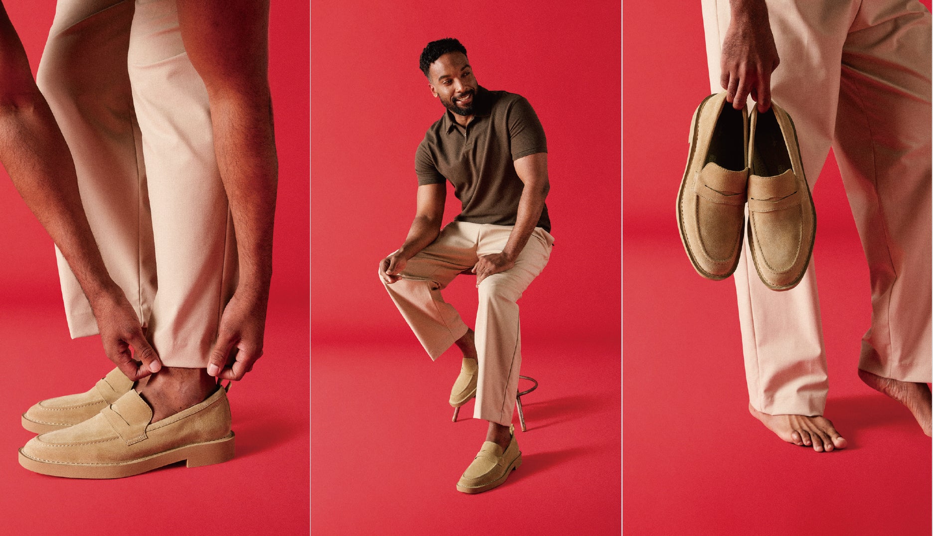 フィットする快適さを実現。アッパーには上質なスエード素材を採用し、ソールには耐久性と安定感の