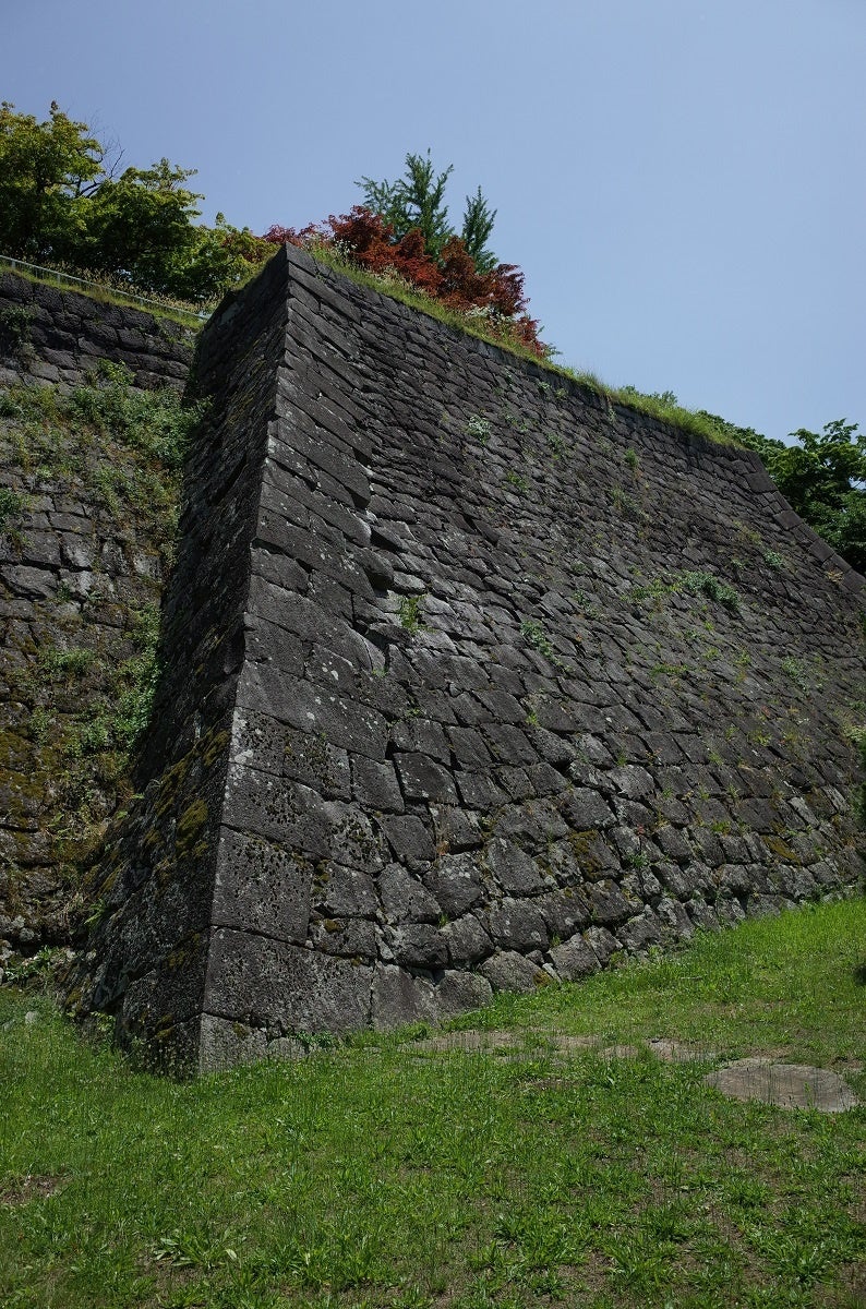 盛岡城は東北地方では珍しく、主要な曲輪すべてを石垣で囲った、総石垣の城郭です。自然石を乱積にした野面積や、ある程度加工した石を積み上げる打込接を布積にしたものなど、さまざまな石垣の積み方が確認できます。