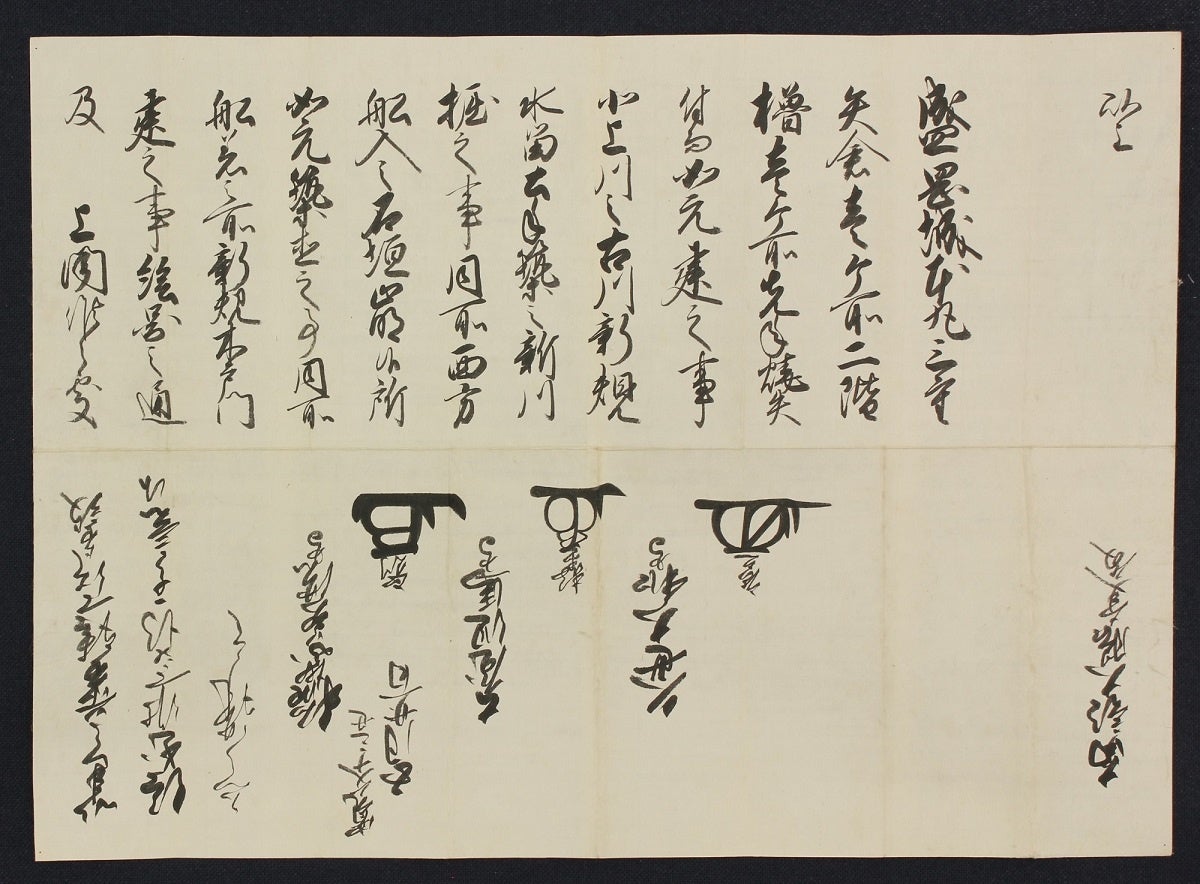 江戸時代、経年や災害などにより傷んだ城郭の修復には江戸幕府の許可が必要でした。本資料は城修復の老中奉書であり、もりおか歴史文化館では計8通を保管しています。