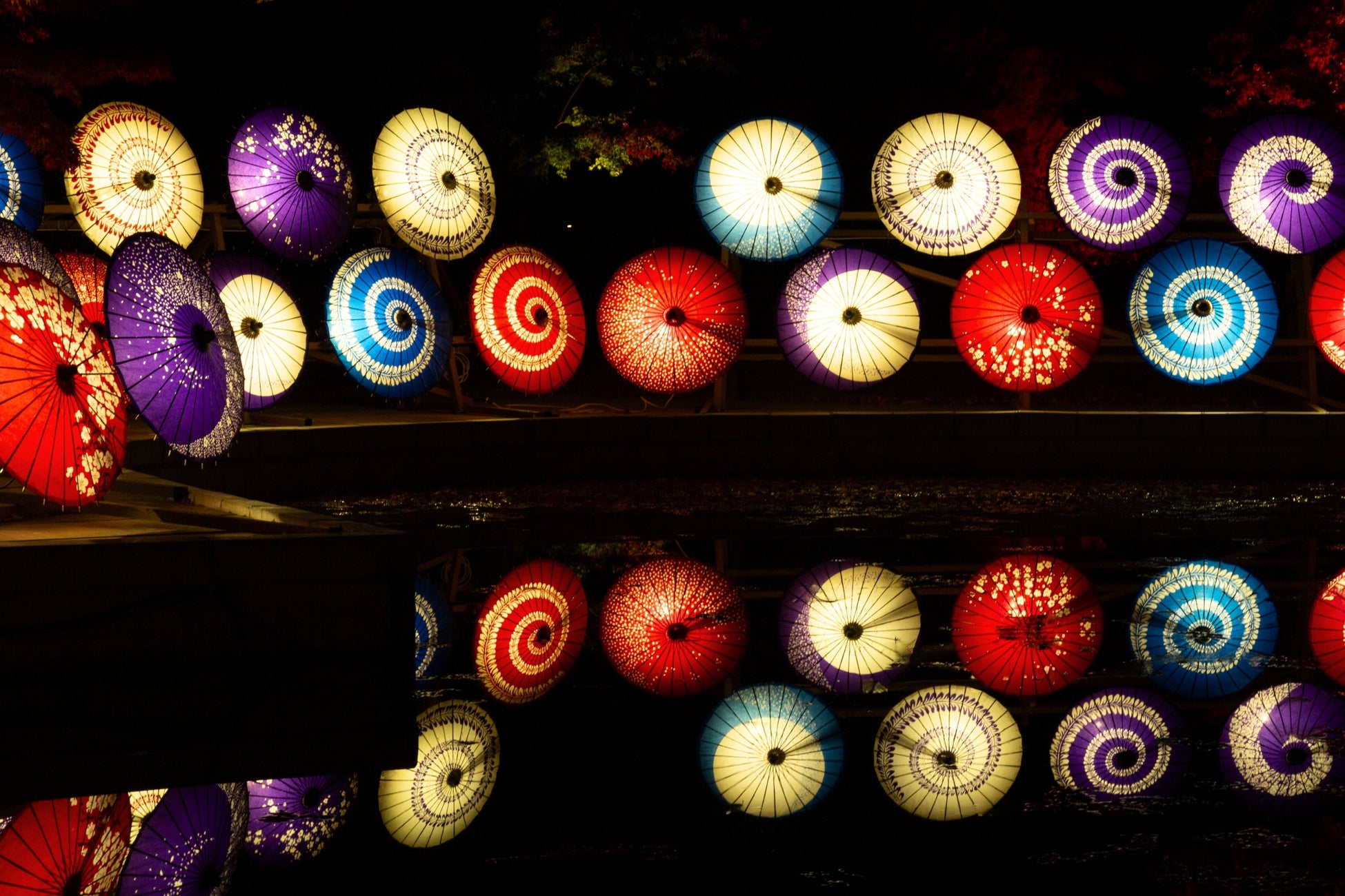 【新スポット】12月は青を基調にした"冬のきらめき"を纏う「和傘のライトアップ」
