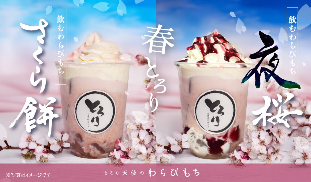 全国にとろり天使のわらびもちを展開する「とろり天使のわらびもち株式会社」は、春の訪れを祝う新商品「桜わらびもち」と「よもぎわらびもち」「飲むわらびもち桜餅・夜桜」を期間限定で販売致します。