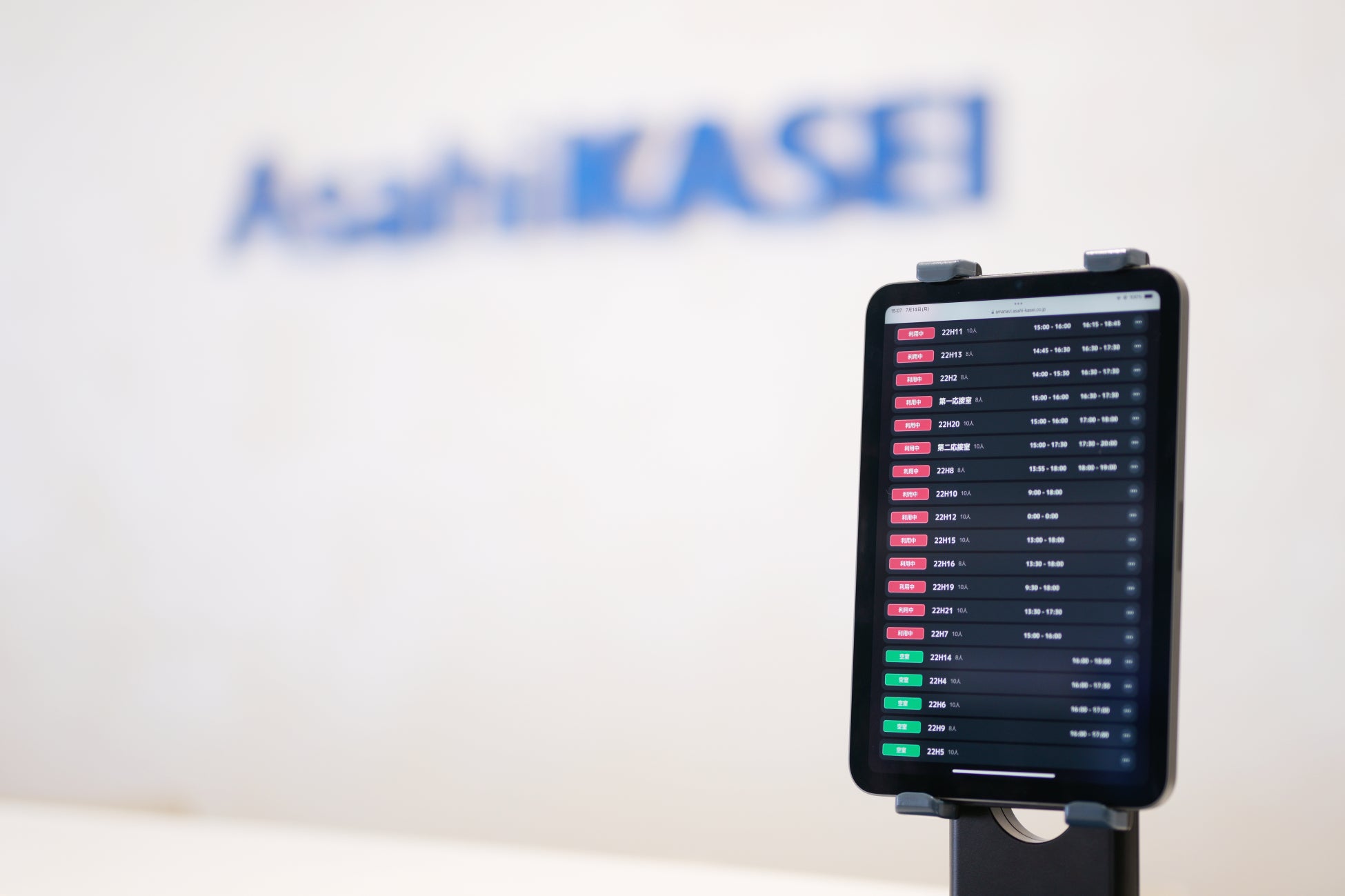 旭化成グループの本社オフィスの来客フロアは、外部パートナーや取引先を迎える社外との重要な接点であり、社内外の交流の核となるスペースです。ここには1日を通じて多数の来客があり、約200室に及ぶ会議室は常に高い稼働率で利用されています。