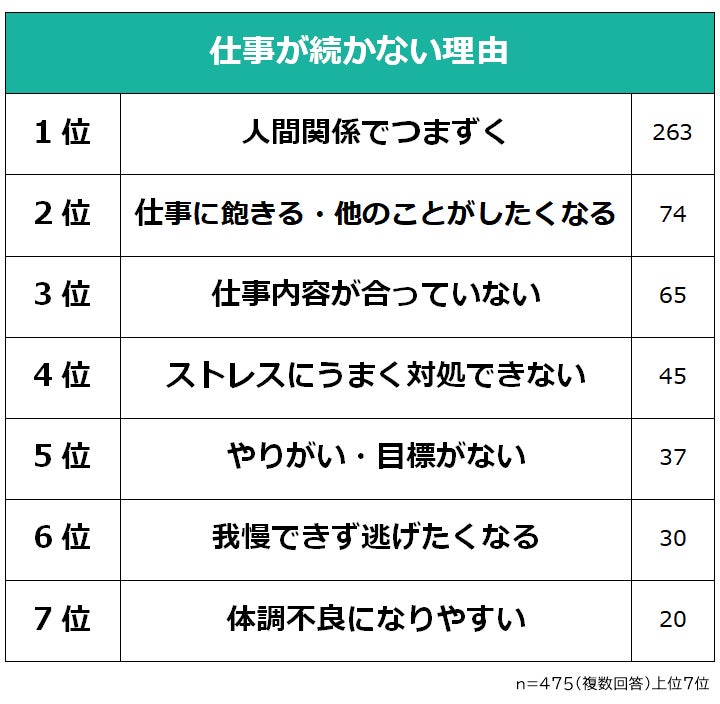 【仕事が続かない理由ランキング】社会人475人アンケート調査