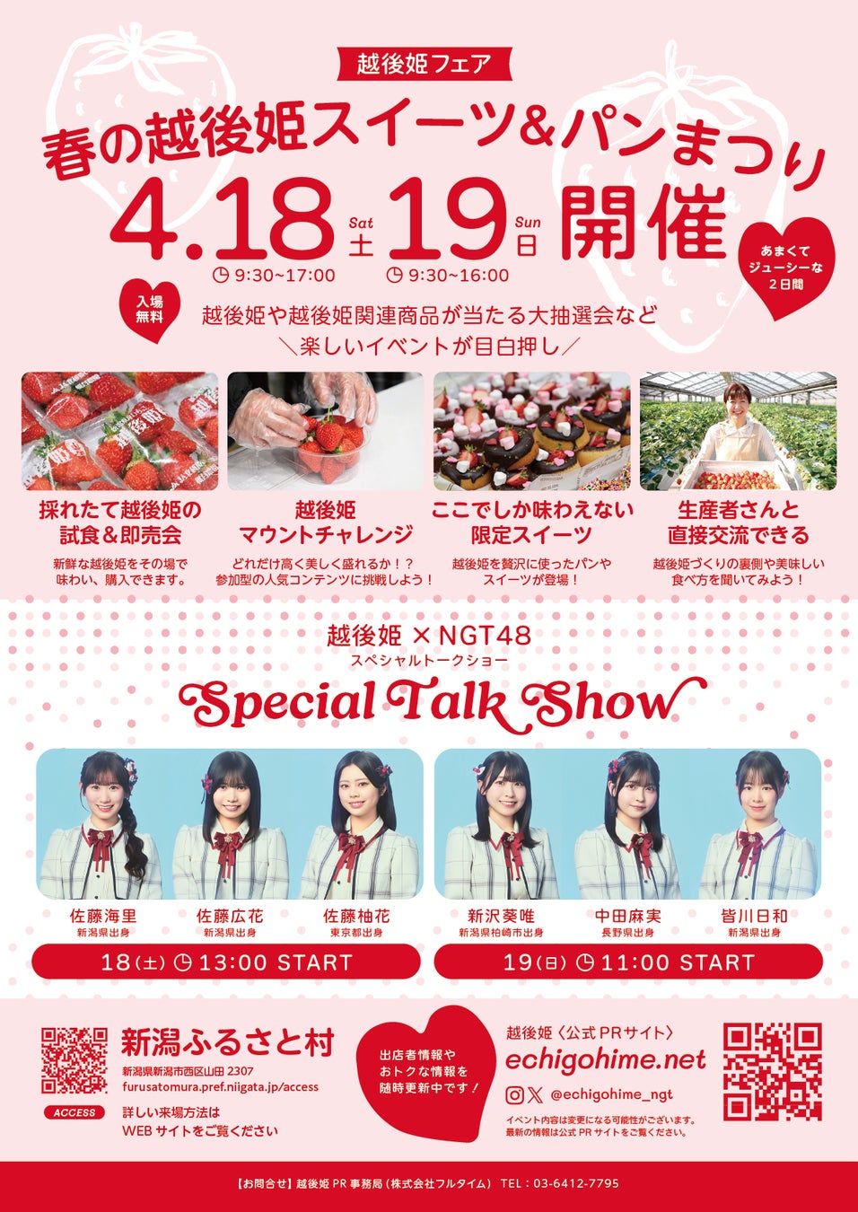 さらに、来場者参加型の人気企画「越後姫マウントチャレンジ」や、NGT48メンバーによるスペシャルトークショーなど、越後姫の魅力を体感できるコンテンツも実施します。