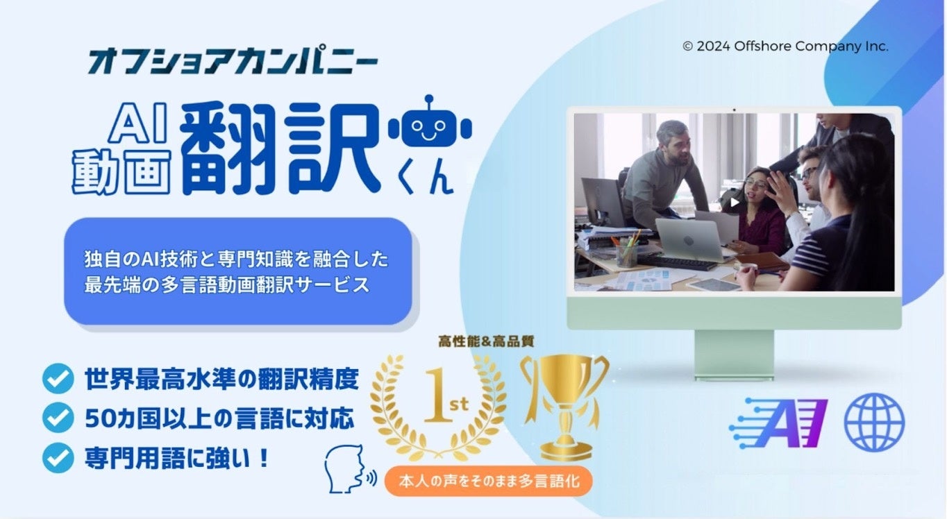 多言語動画音声翻訳サービス「AI動画翻訳くん」は、動画内の話者の声の特徴を完全に保持したまま、世界最高水準の翻訳精度95%超*2という、高精度な翻訳技術を用い、50カ国以上の言語に翻訳します。従来の字幕や吹き替えとは一線を画し、話者本人が外国語を流暢に話しているかのような、翻訳吹き替え動画の生成が可能です。