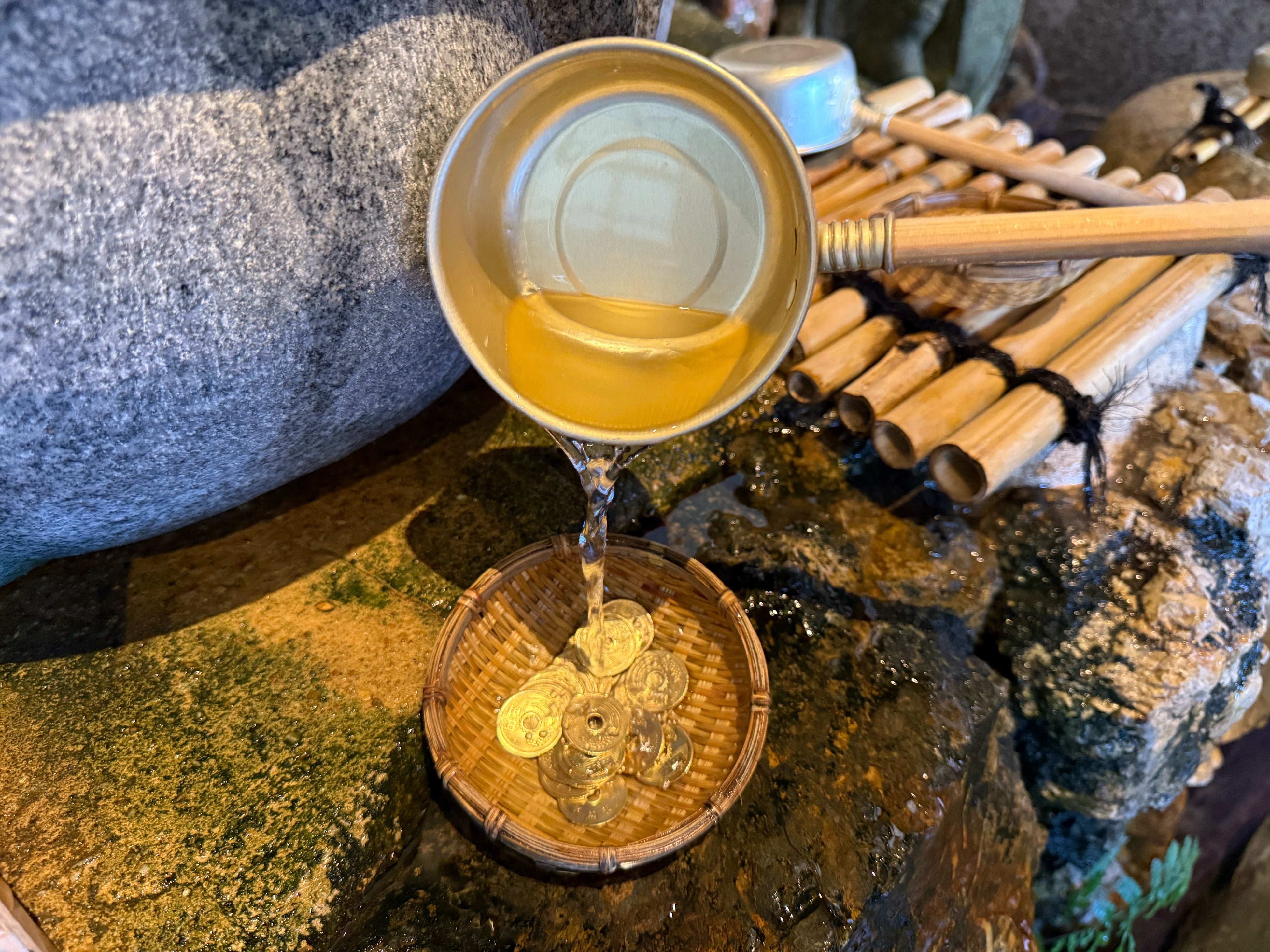 期間中に来店されたお客様全員へお渡しする五円玉は、良縁成就・財運向上で知られる「銭洗弁天(六波羅蜜寺)」で洗い清めた特別なものです。古来より銭洗弁天で洗ったお金を使うと福が舞い込むとされており、初詣のお賽銭としても縁起が良いとされています。新年のスタートにふさわしい“清めのご縁”をお届けします。