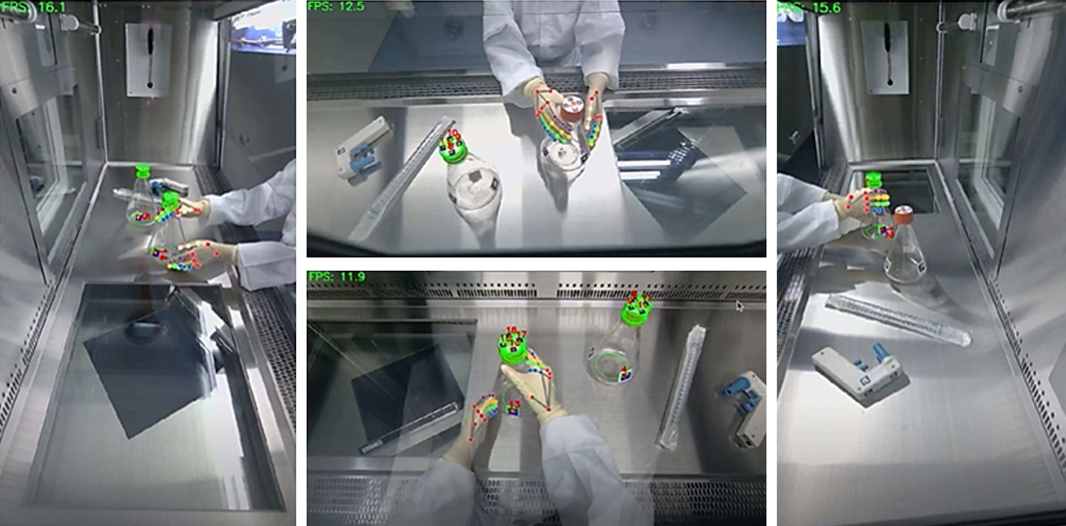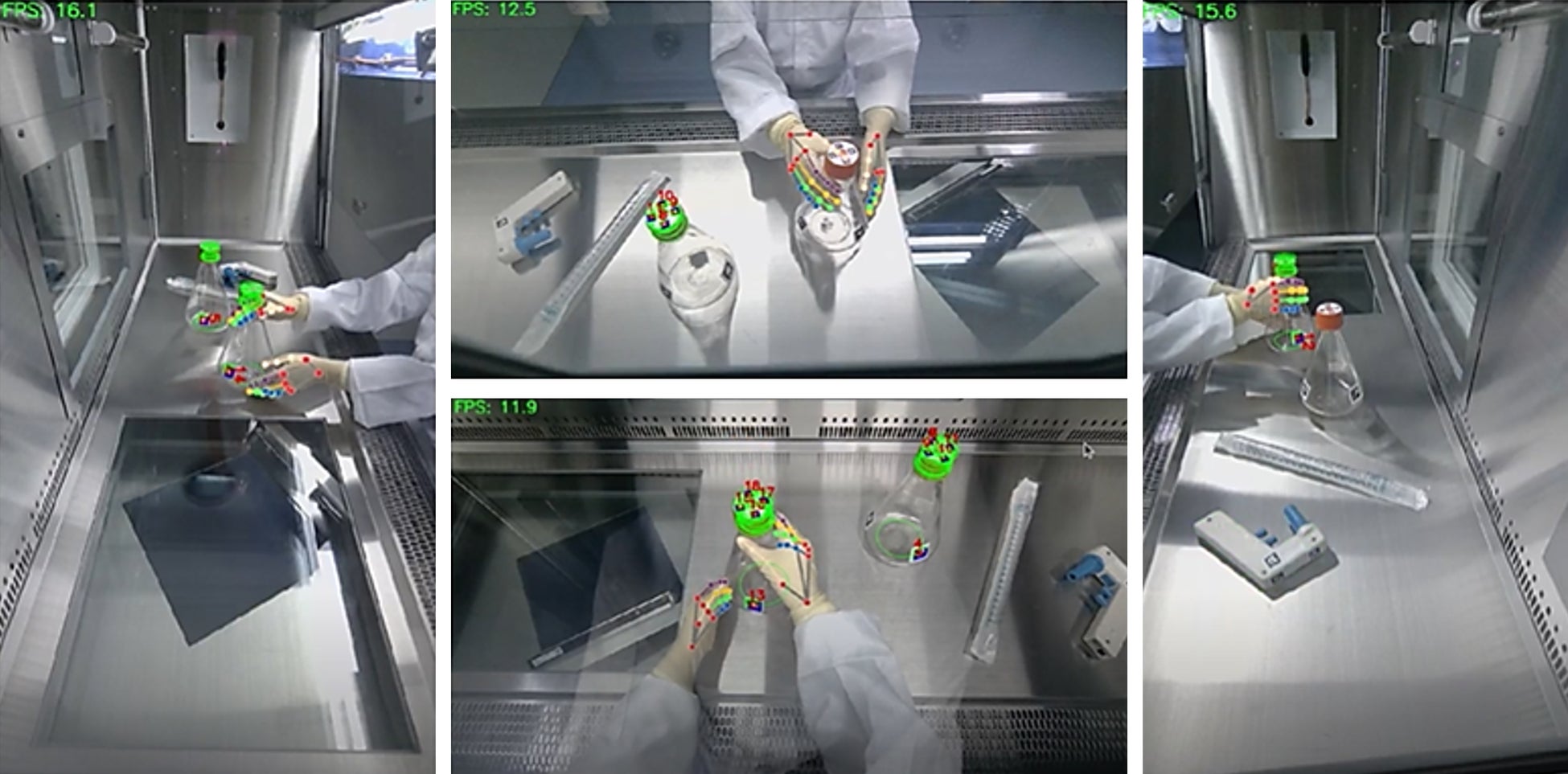 厳密な品質管理が求められる安全キャビネット内での無菌操作や、製造ラインなどの手作業の現場では、手順のわずかな違いが品質や安全に大きな影響を与えます。しかし、熟練者の経験や感覚に基づく作業ノウハウを、特定の人に依存せず共有することは容易ではありません。また、従来は人の目による確認が中心であったため、定量的な作業記録を蓄積することが難しく、問題発生時の事後検証が困難であることや、労働人口の減少に伴い、経験の浅い作業者が作業を担う場面が増えていることなども現場における課題となっています。
