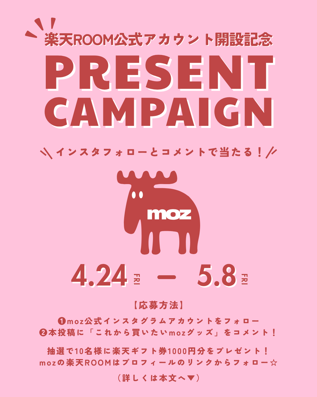 応募方法: 公式Instagram(@mozsweden_japan_official)をフォローの上、指定の投稿へ「これから買いたいmozグッズ」をコメント。